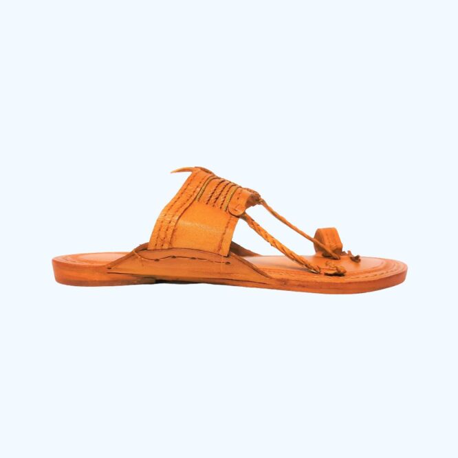 | It is called “Senapati Kolhapuri Chappal. Specially designed by the craftsmen of Kolhapur with its unique shape. it comes in a variation like double wadi. It is rounded stitched kolhapuri. |