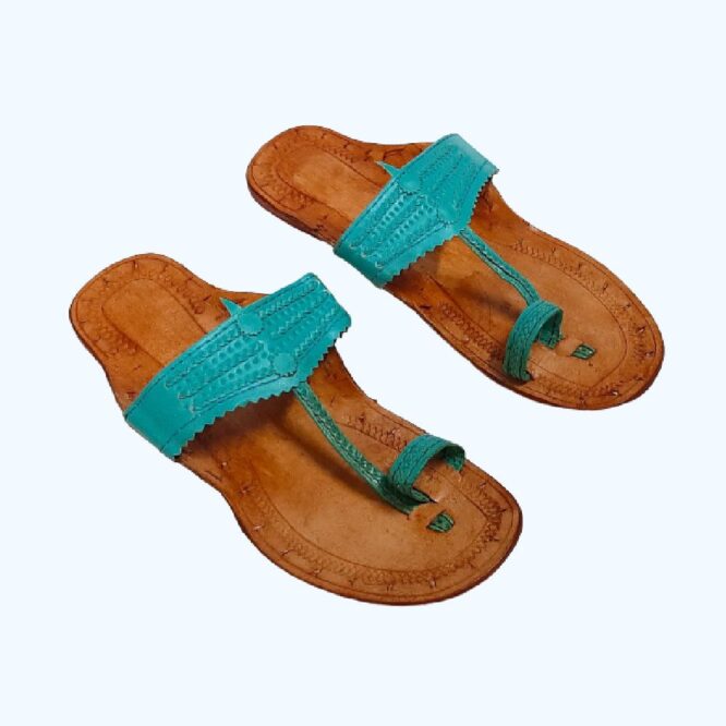 | Turquoise Colour kolhapuri chappal Indian handmade style,trendy slipper ,Authentic flat ,Ethnic slip on. |